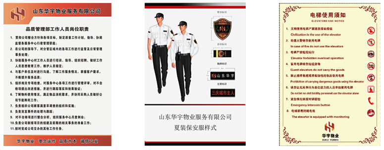對服務(wù)項目建立人性化服務(wù)標(biāo)識系統(tǒng)(CIS)。完善的標(biāo)識系統(tǒng)是物業(yè)區(qū)業(yè)主、外來參觀人員明亮的眼睛,也是物業(yè)管理的形象工程。根據(jù)公司的標(biāo)識系統(tǒng)管理規(guī)范,我們將建立公眾標(biāo)識,如道路指引標(biāo)識、物業(yè)區(qū)標(biāo)志、消防標(biāo)識、綠化標(biāo)識、設(shè)備設(shè)施標(biāo)識、景觀標(biāo)識和其它公眾標(biāo)識等;其次,我們將設(shè)立服務(wù)標(biāo)識,如公司標(biāo)識、服裝標(biāo)識、工作牌、辦公標(biāo)識等。具體標(biāo)識樣式節(jié)選如下: